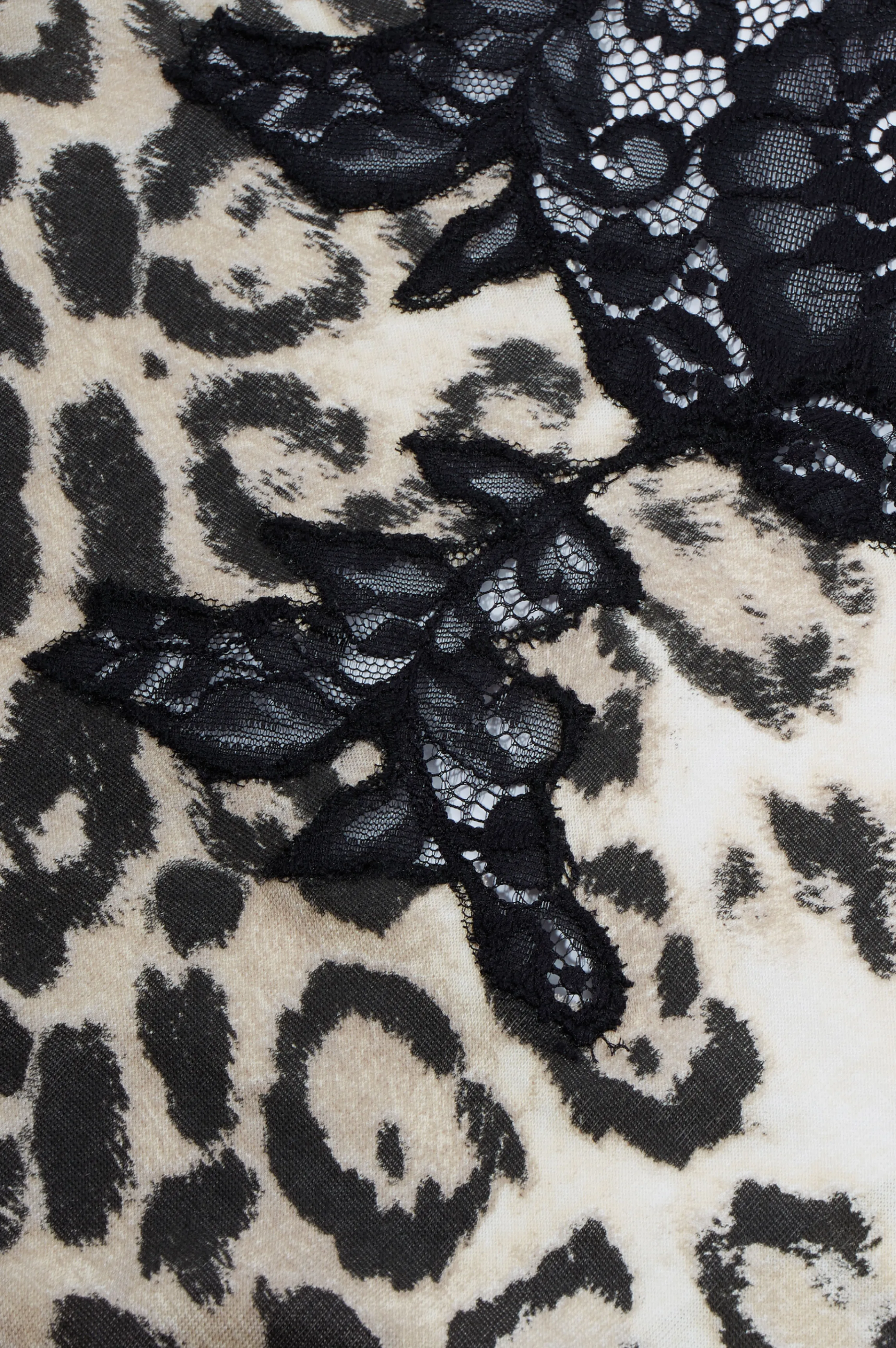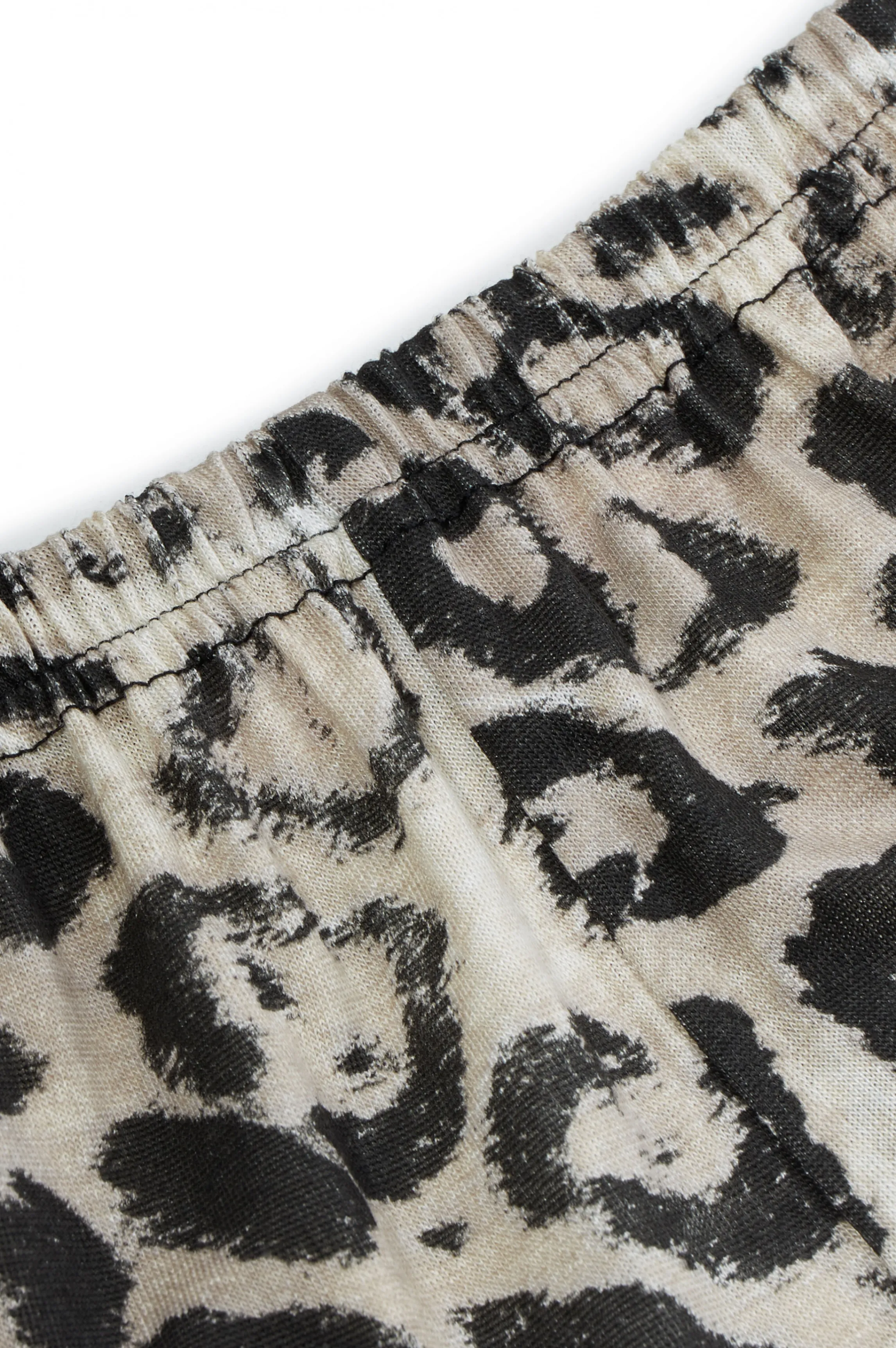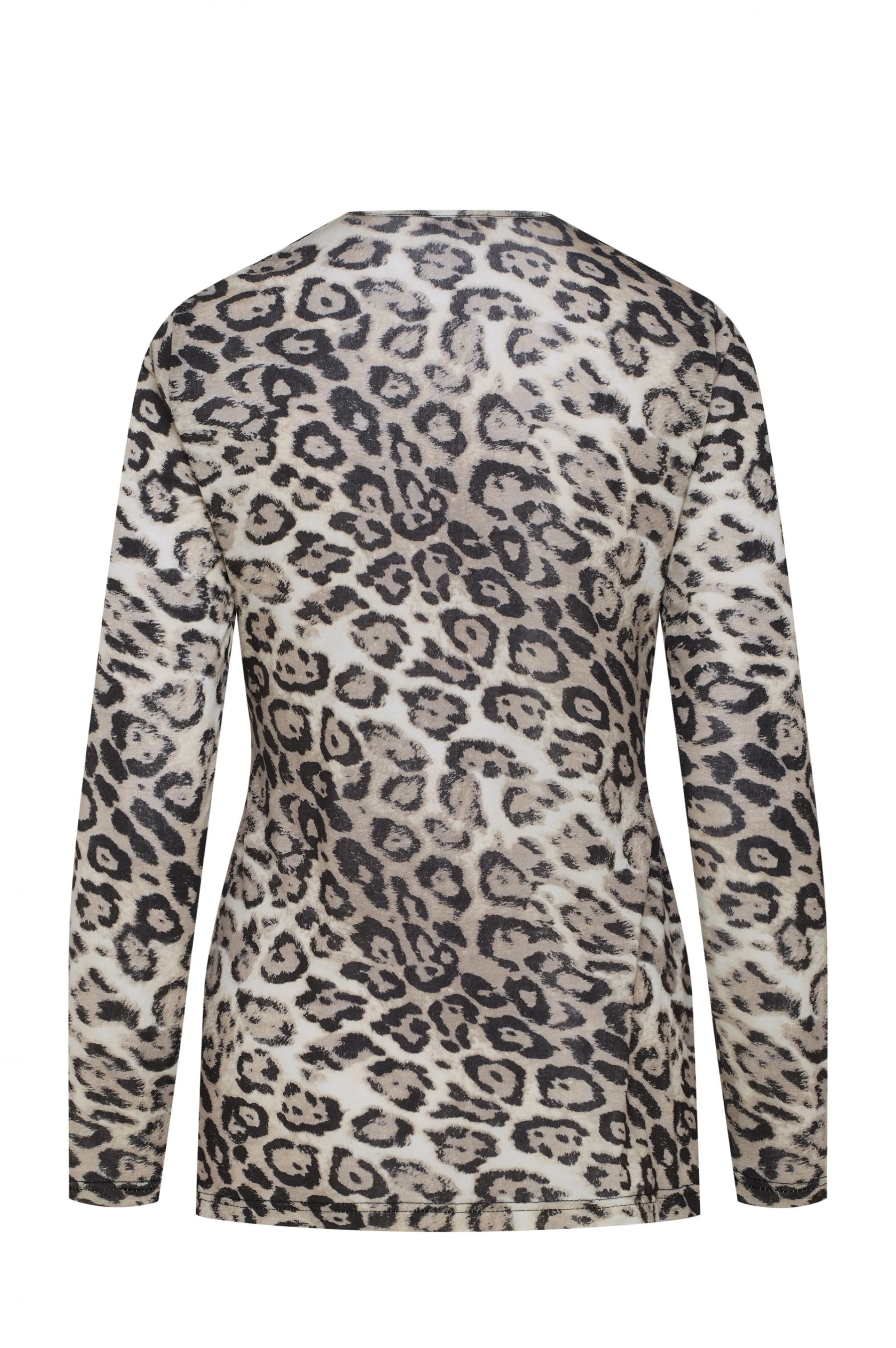 Loose pyjama in panther color. A soft and comfortable jersey modal fabric. Loose cut with sleeves enhancing the wrist. Black handmade embroidered flowers.