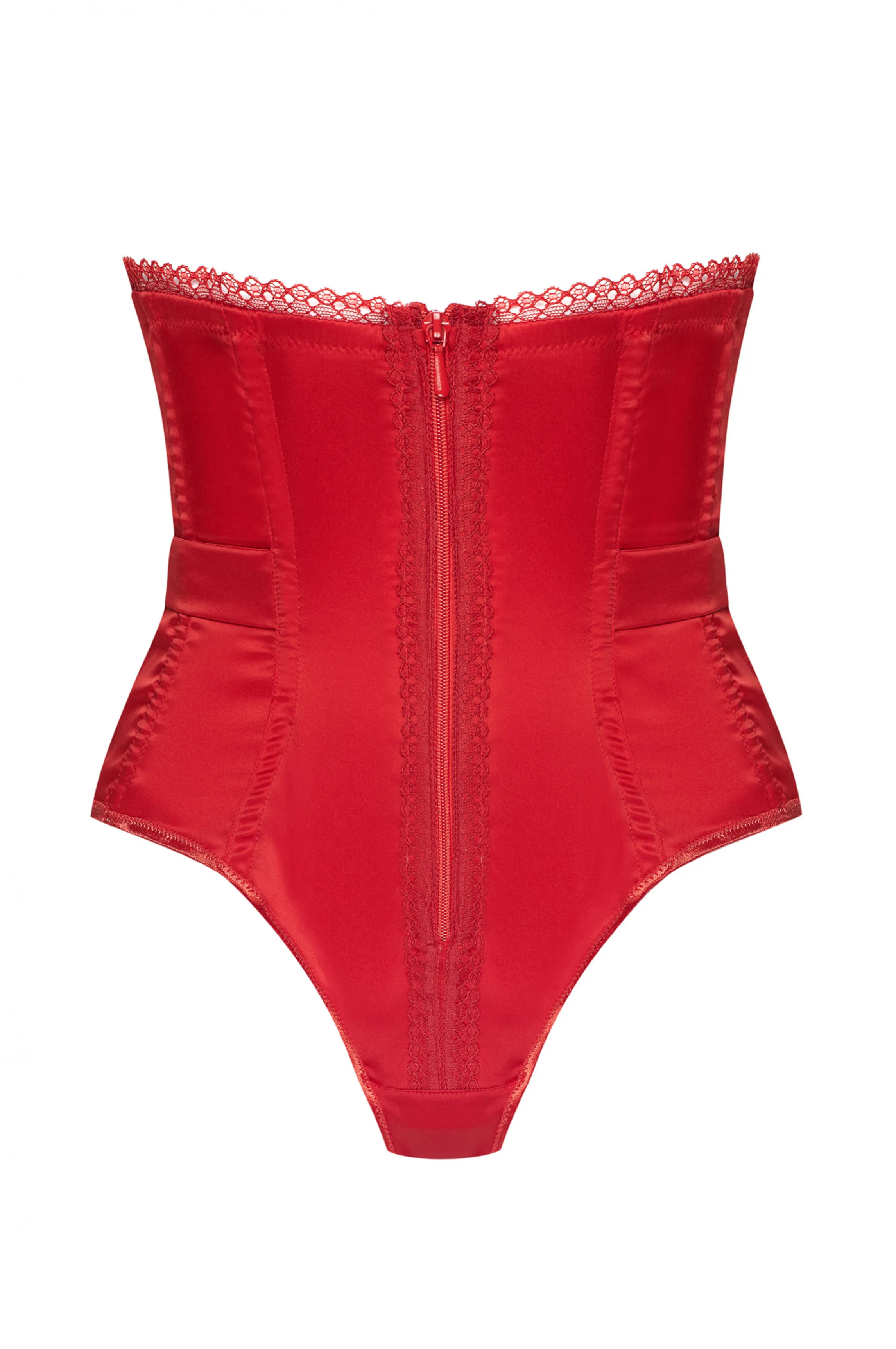 Waist band that refines the bust exceptionally and highlights the waist for a sublime silhouette.The red satin waist ban…