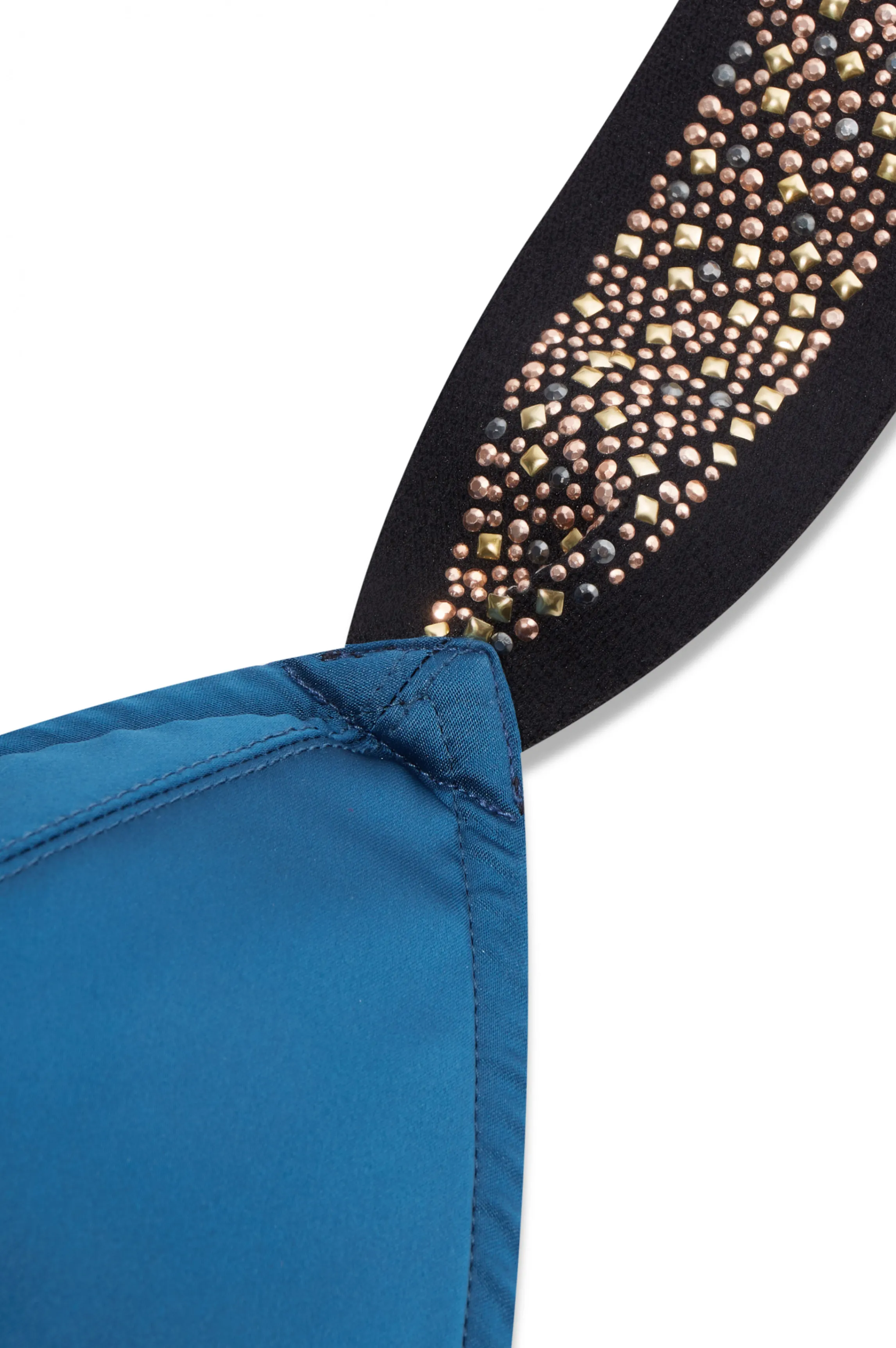 The green satin bustier Gloria bra has strass straps criss cross in the back. No wire with triangle shape for a very dressy look