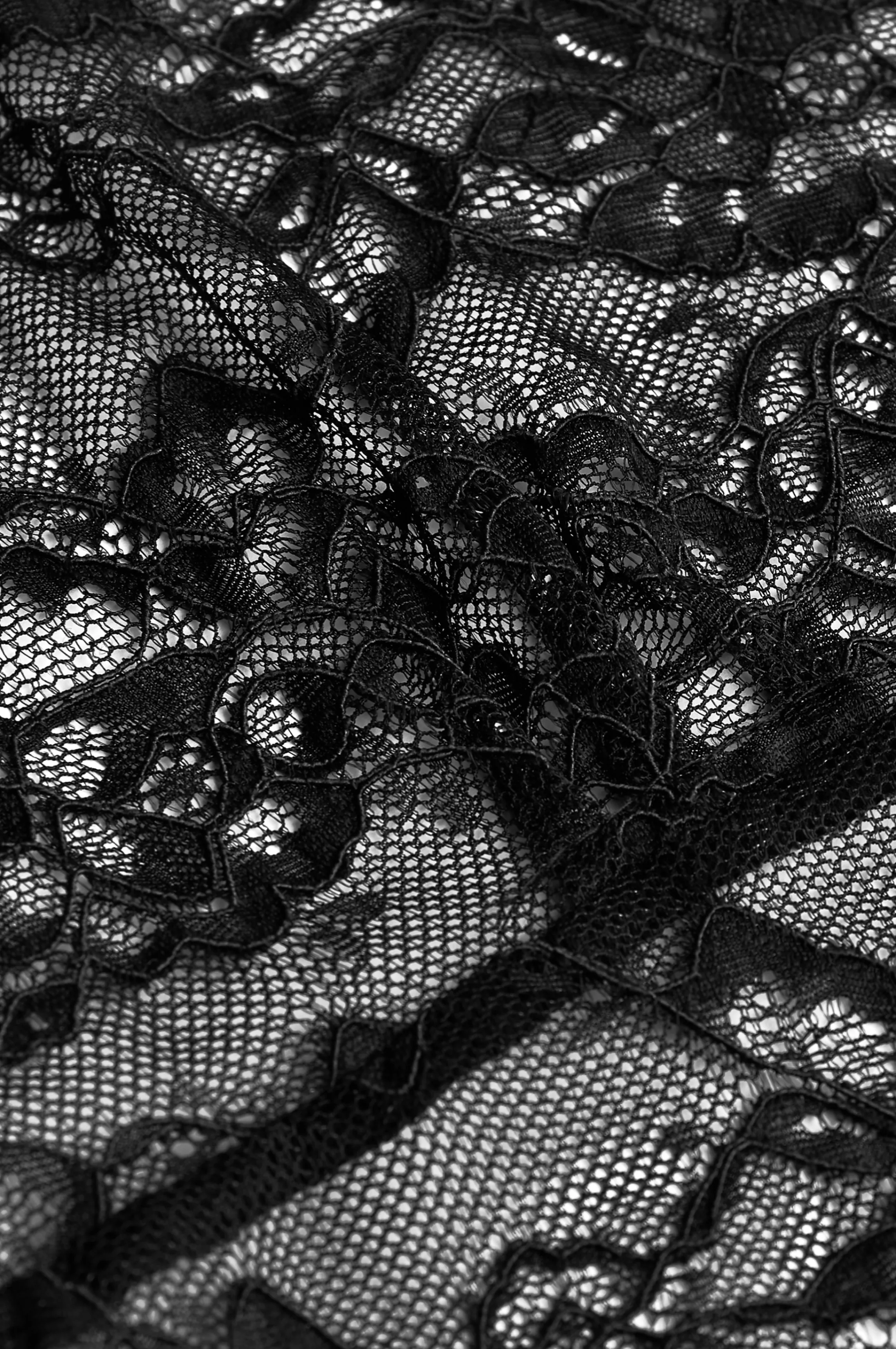Floral embroidered lace body suit with long sleeves and a sheating panties. A seam under the bust will shape your chest nicely. The panties have a shaping affect and the boat neckline is very flattering