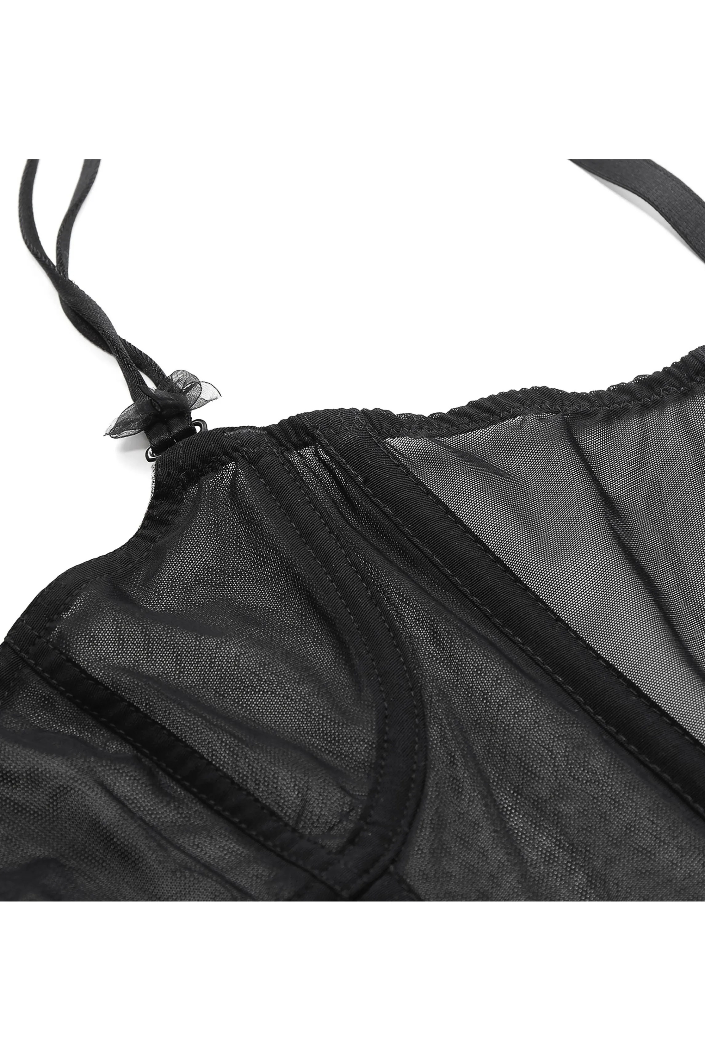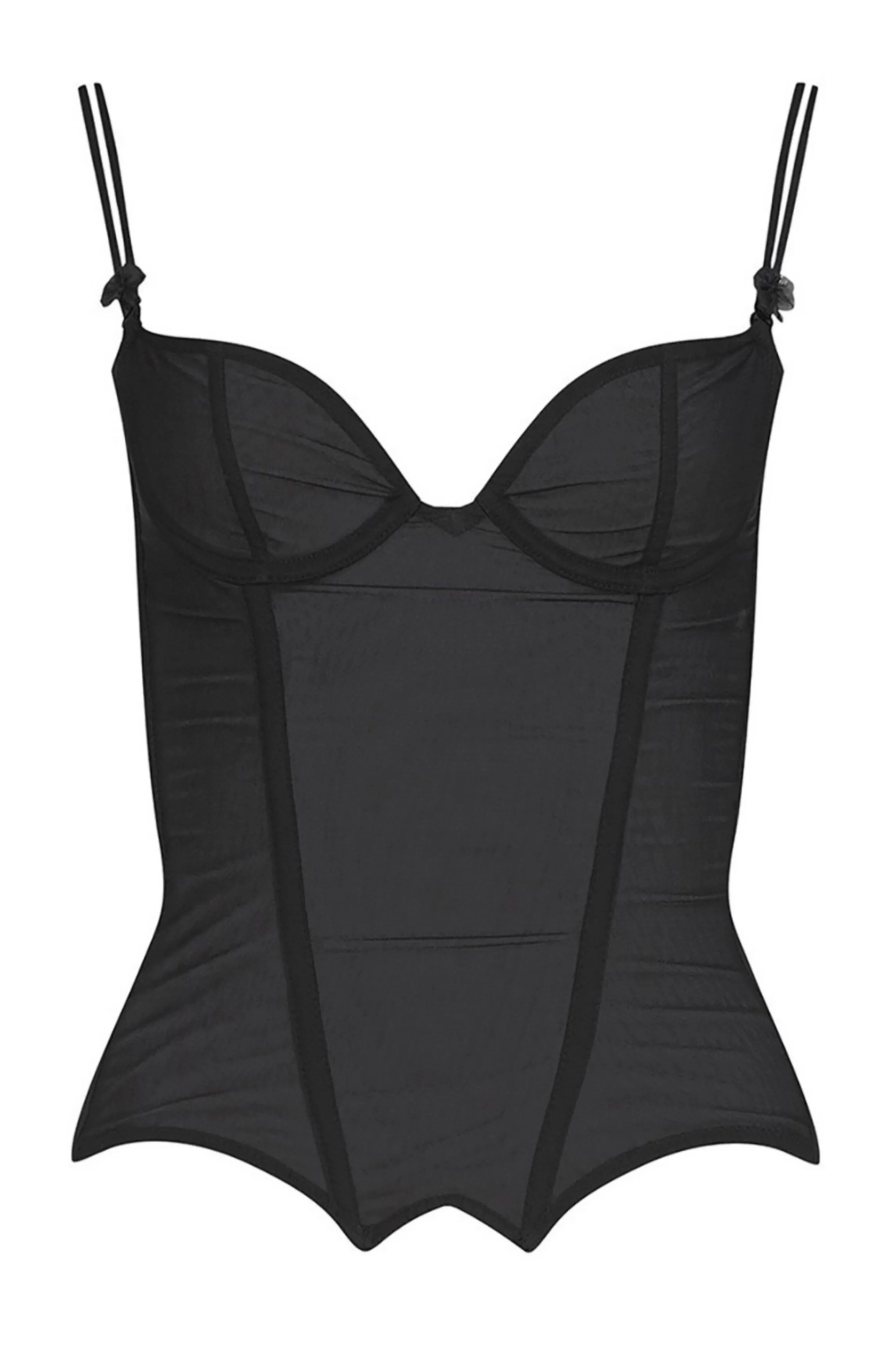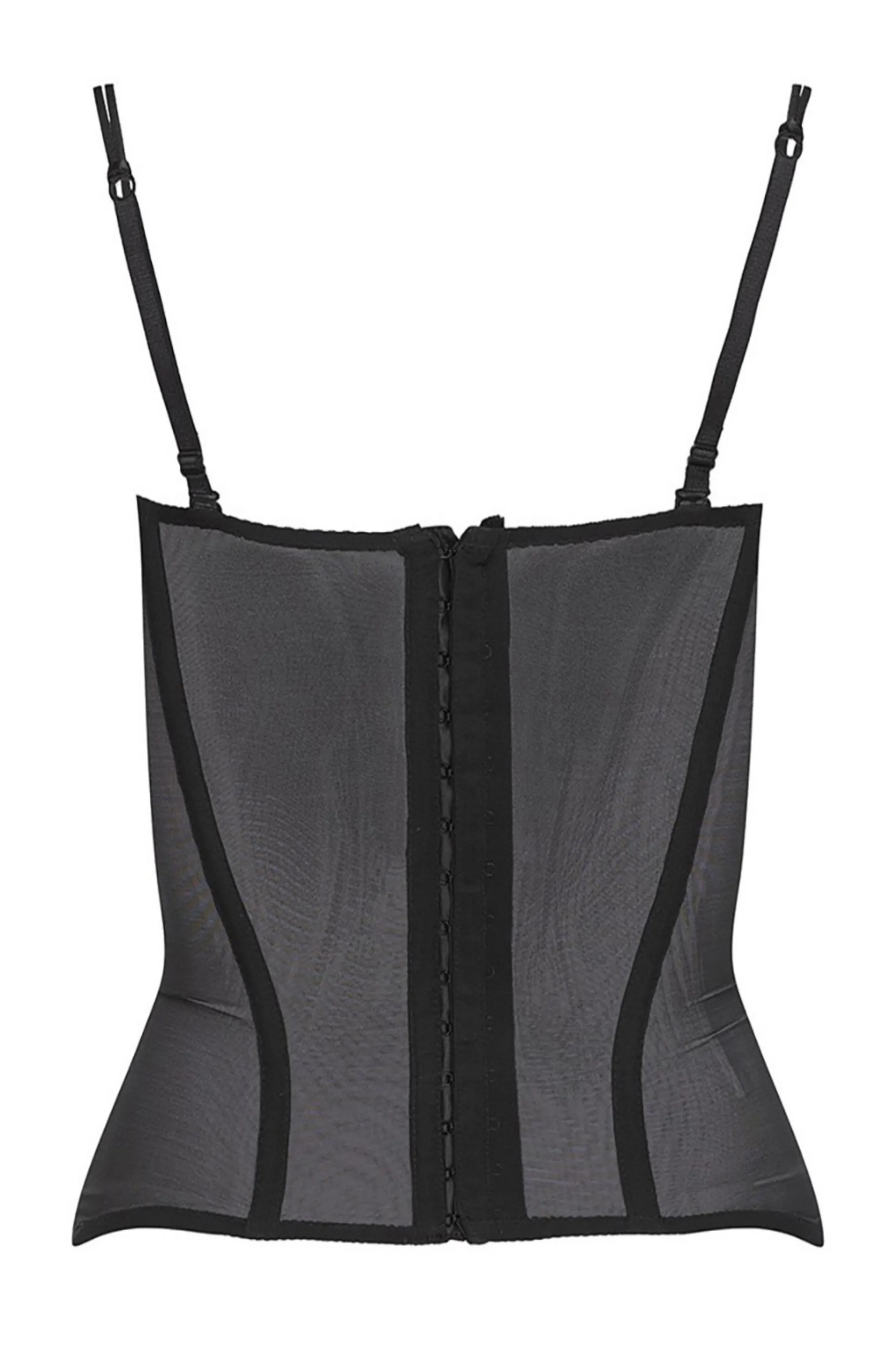 Strapless bustier, sheer black tulle. Perfect body shaper, great push up effect.