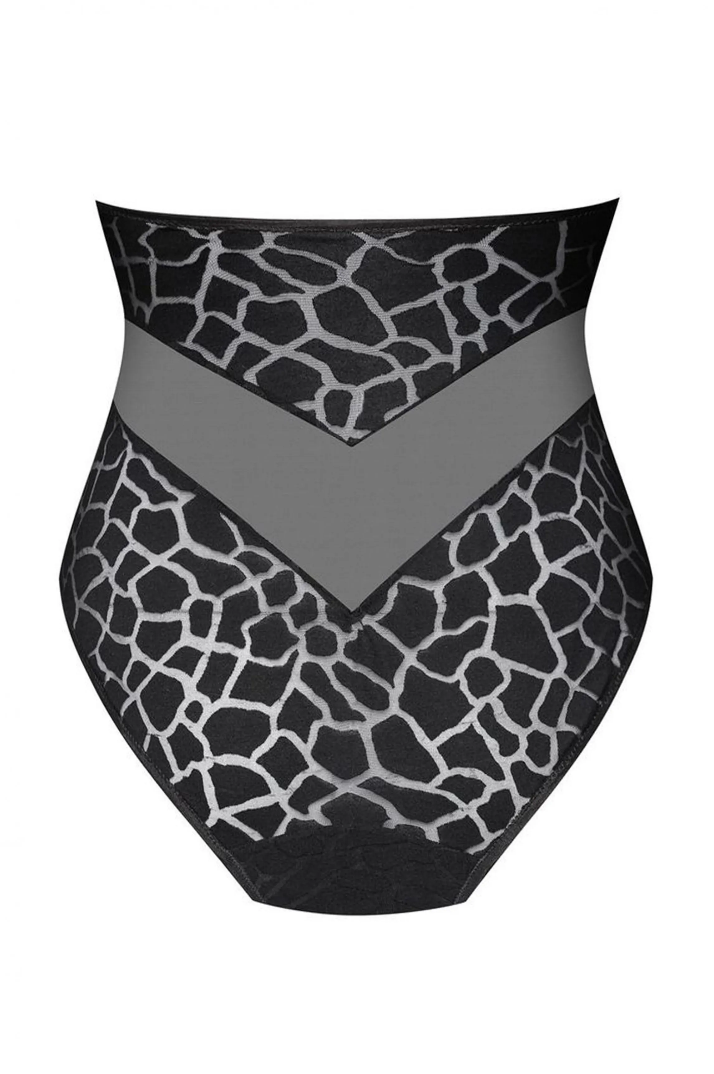 Black high waist panties in modal, animal print look, playing transparency on the skin. Its fine and light material accompanies you throughout the day.