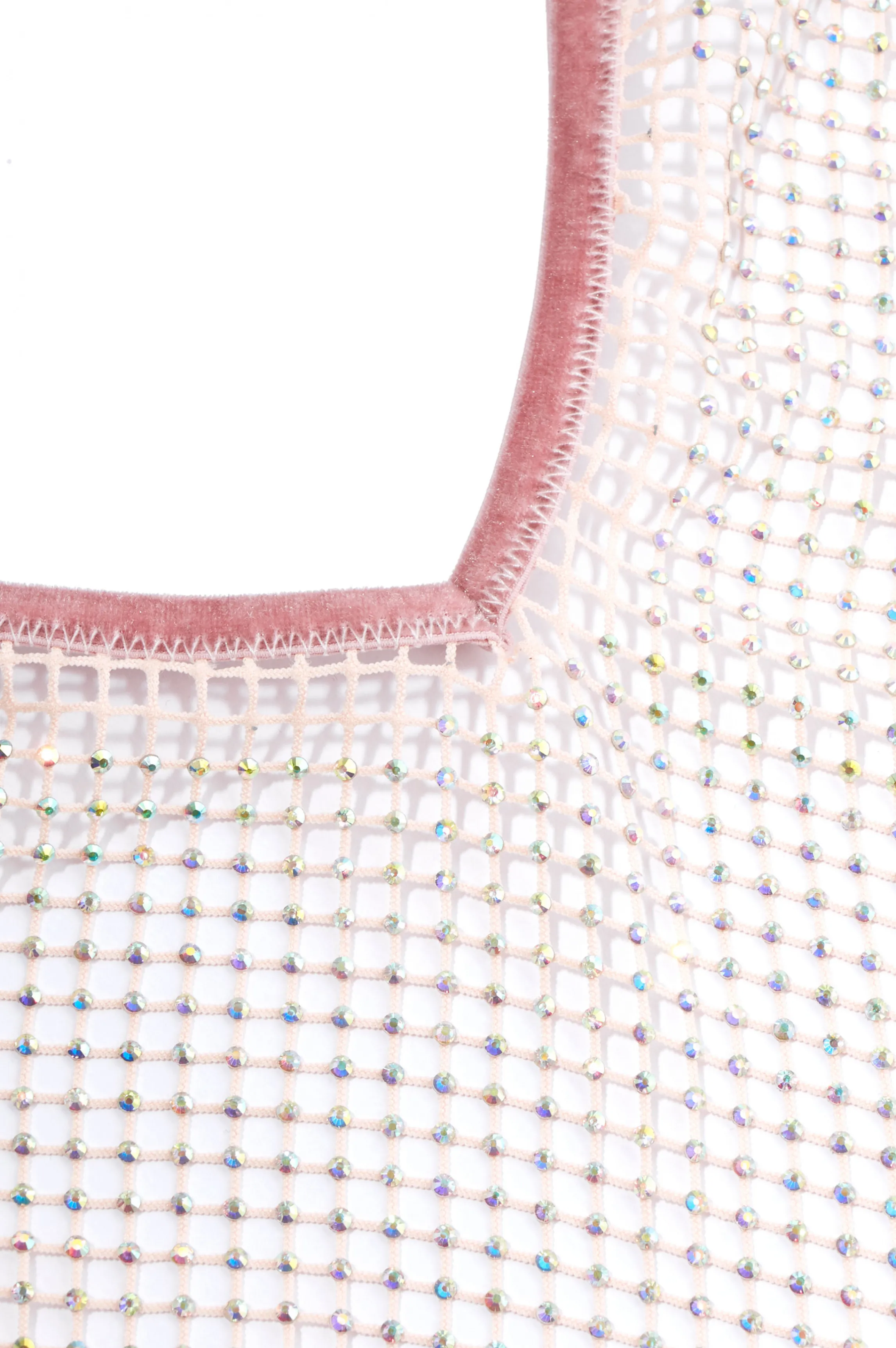 The Fishnet body is handmade in our Parisian workshops. A delicate pink net is decorated with small iridescent strass, y…