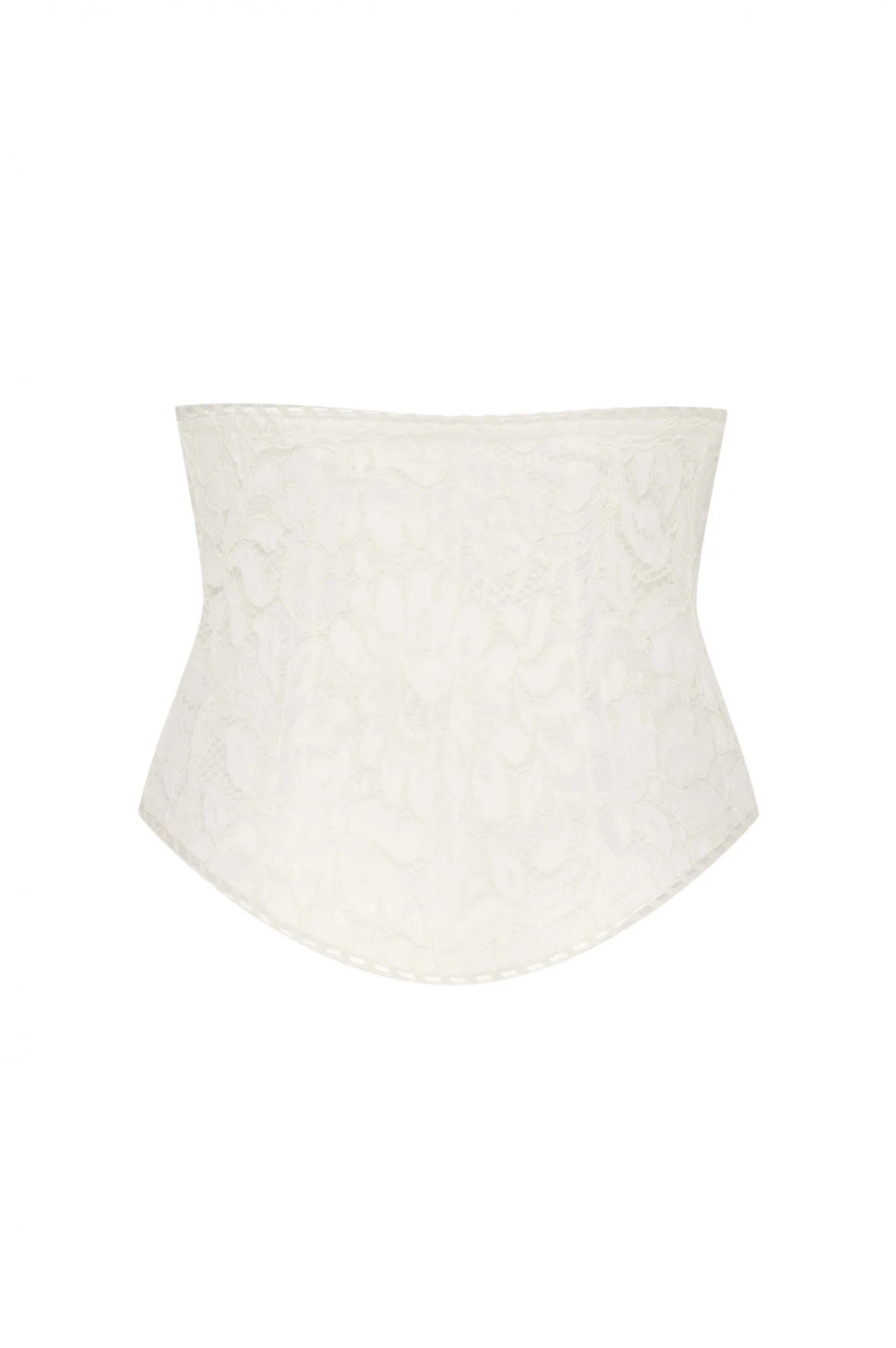 This waspie is made from fine ivory lace refines your silhouette to perfection. Through the use of precise corseting techniques, Loria enhances your beautiful curves while refining them gently. The lacing on the front adds a further touch of sensuality to this delicate piece, and your breasts are highlighted by its high-rise design.
