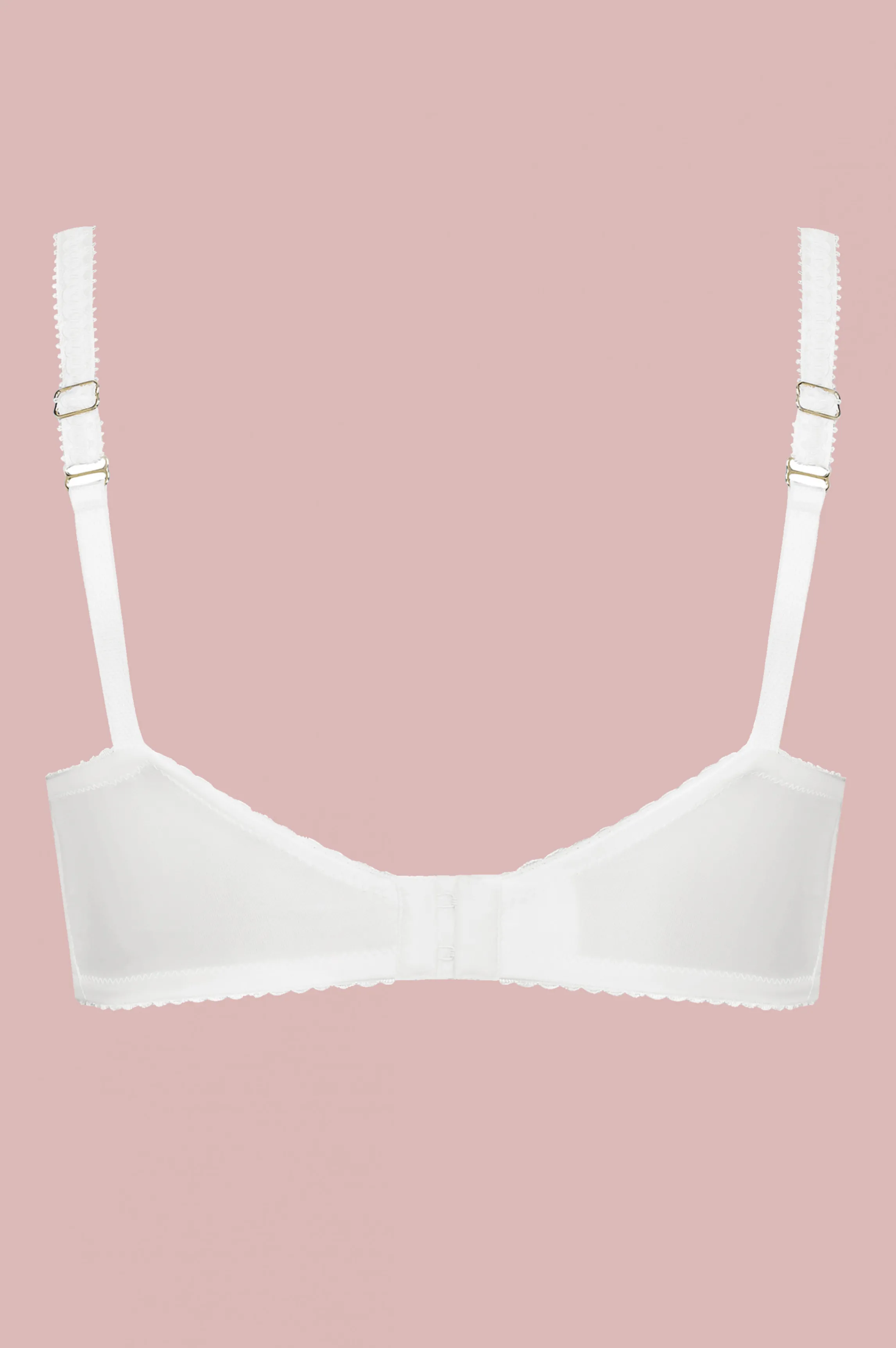 A push-up bra with a plunging neckline. Made in France, the bottom is in satin and the cups are made in lace with draped details for a sublime volume. It discreetly enhance your breasts under your outfit.
