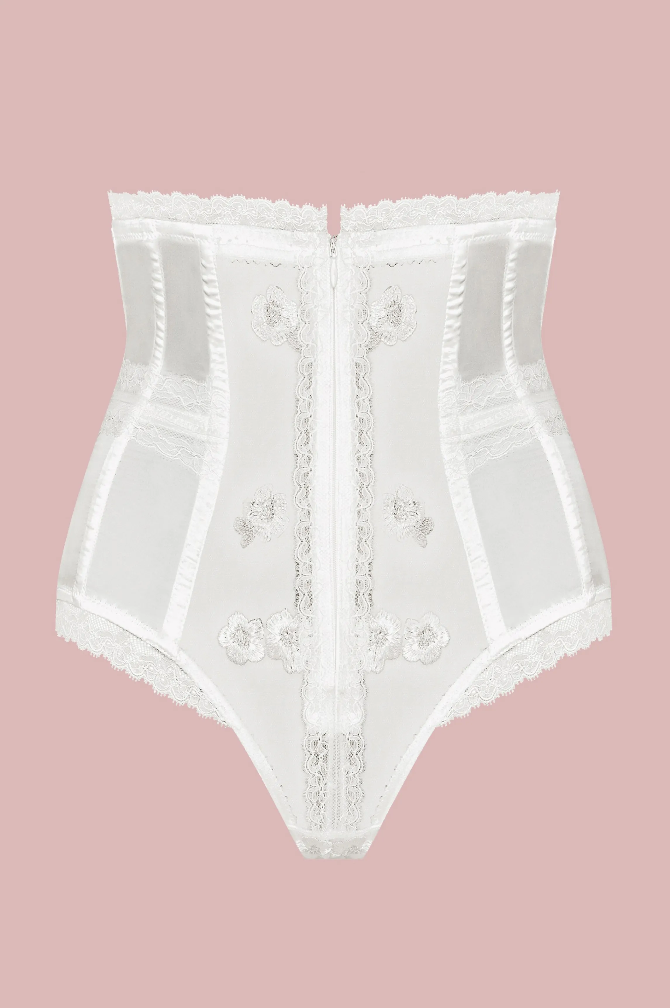 High waist ultra-shaping panties of materials mixing tulle with embroidered satin. The tanga cut on the buttocks has a very flattering cut and forms a beautiful rounded shape. Sexy and comfortable. Combine with our 424 ivory embroidered tulle bra or our ALEXIA fleurette bra to create the perfect ensemble.