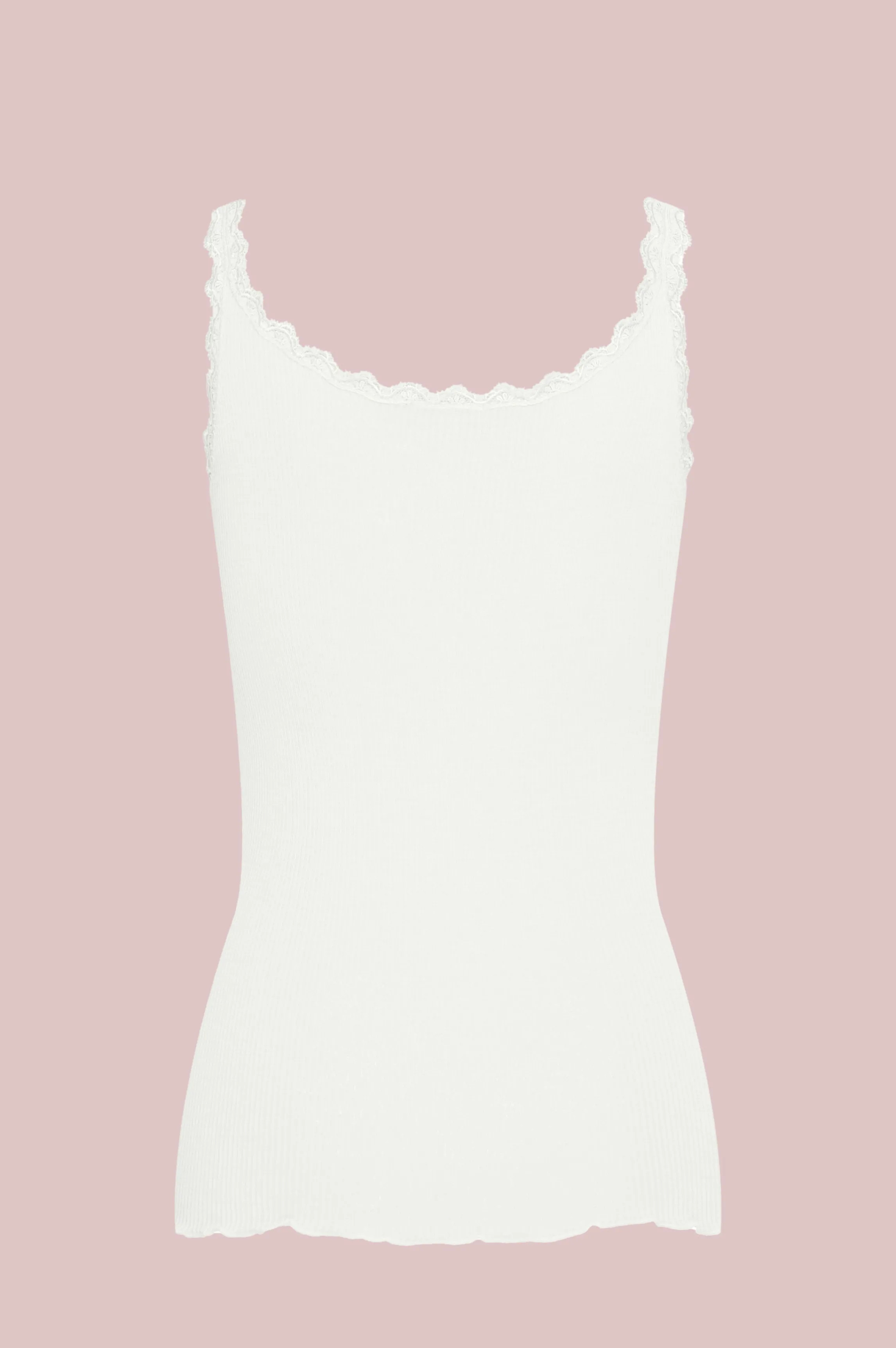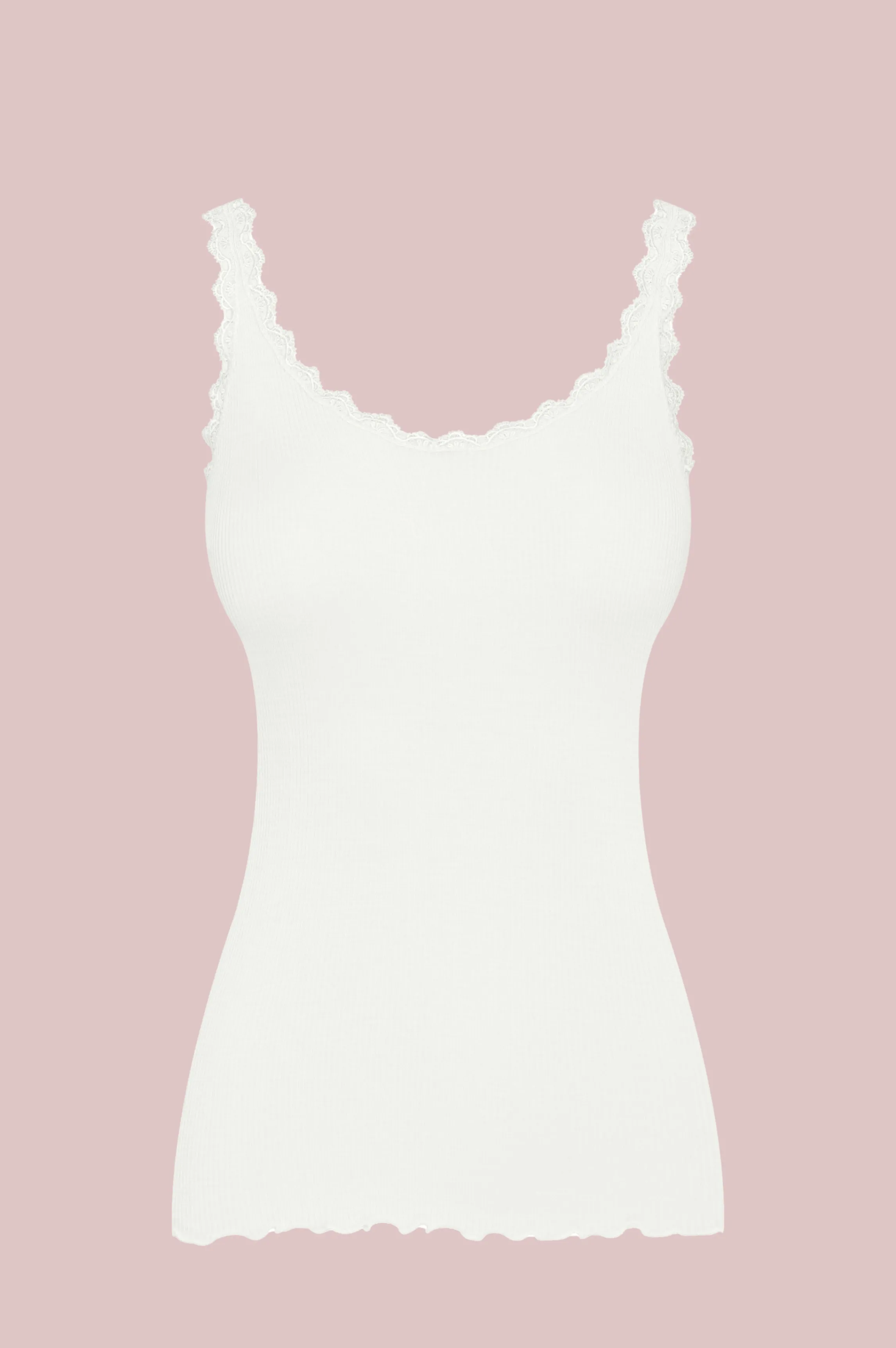 Tank top in a refine pleated ivory silk. Embroidered-embellished straps and neckline.