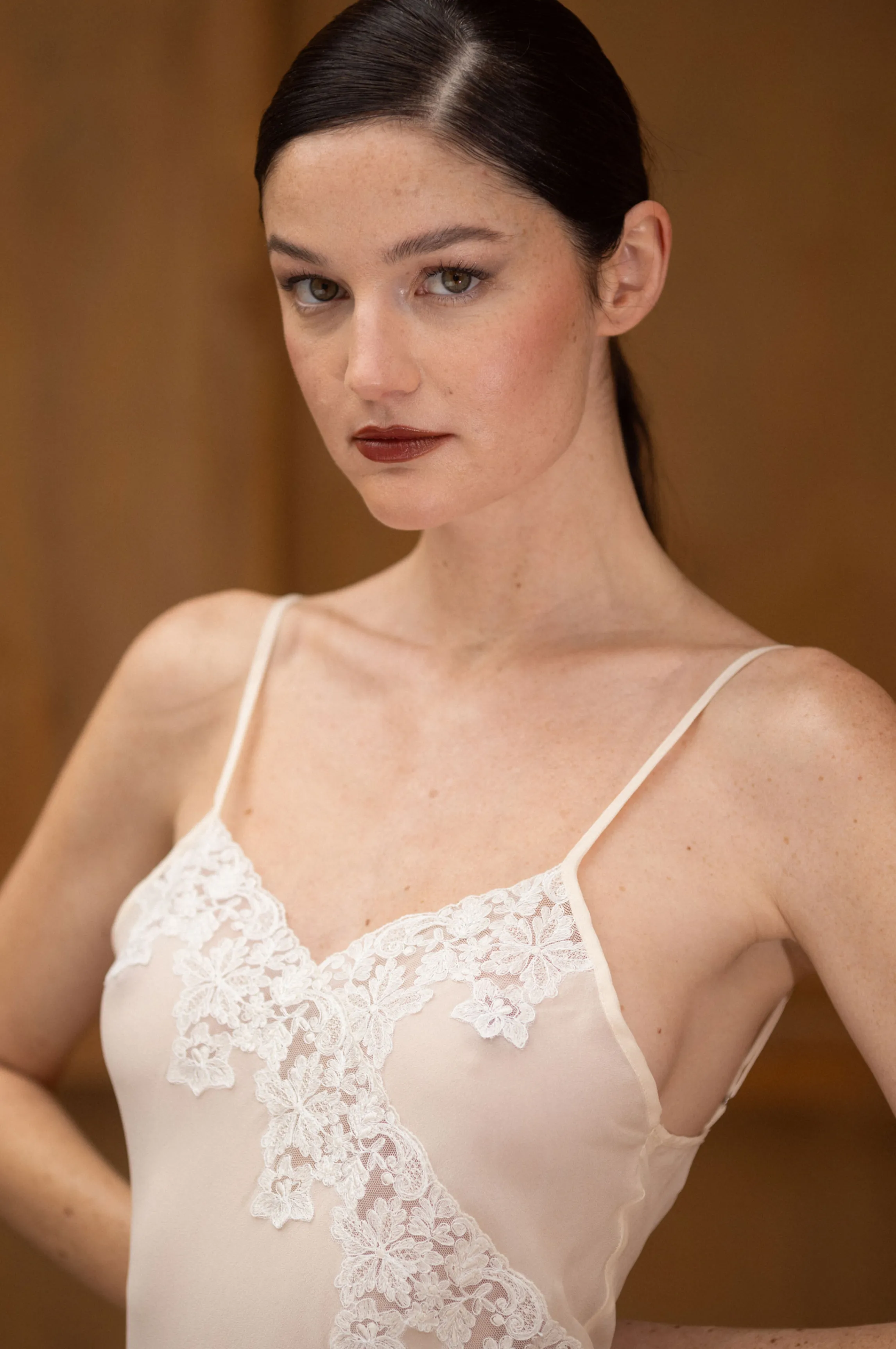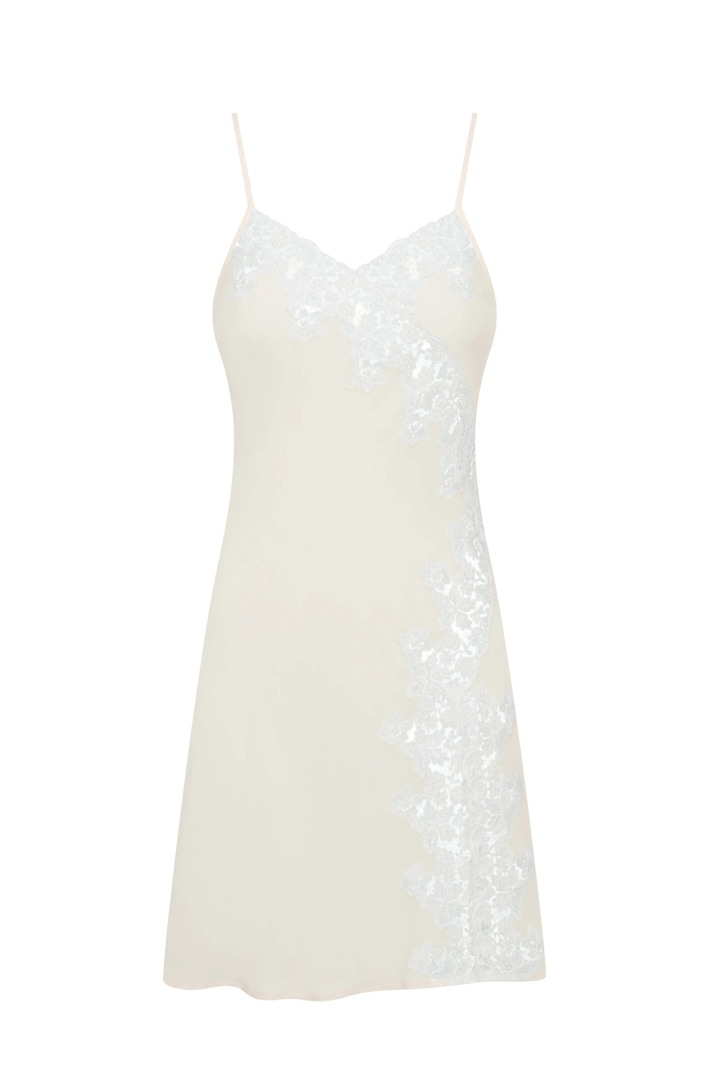 Silk nightdress in crepe de chine, ivory color, thin adjustable stratps