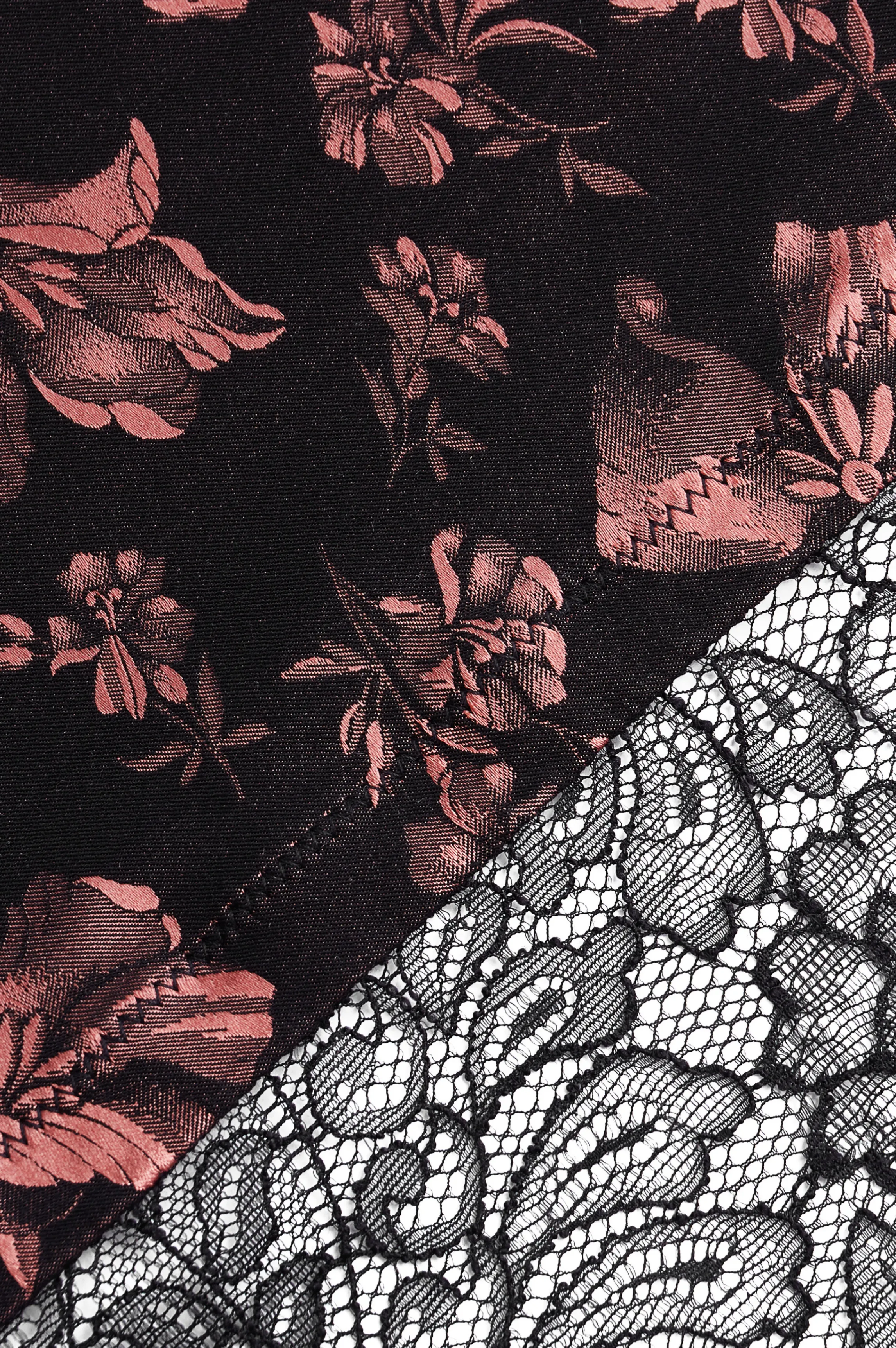 This dress outlines an elegant silhouette, thanks to its turtleneck and its pleats on the small of your back. Entirely made in a Lyon brocard satin, the Violetta dress is an extremely versatile piece that you can wear by day and by night, either over a pair of legging or with stockings. Its fitted cut and its delicate Calais lace perfectly embody the timeless Cadolle touch.